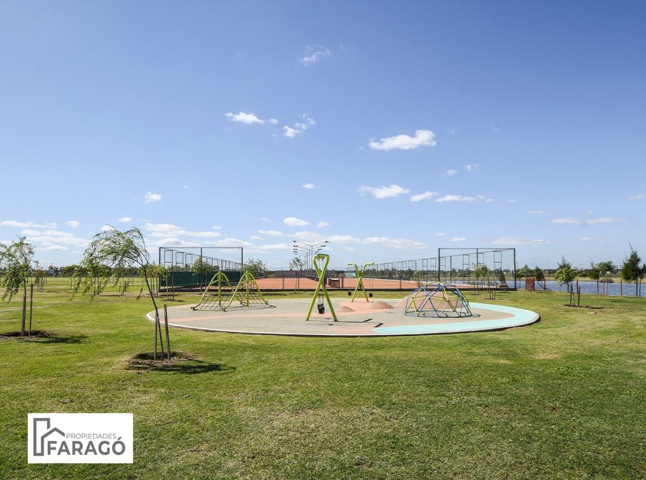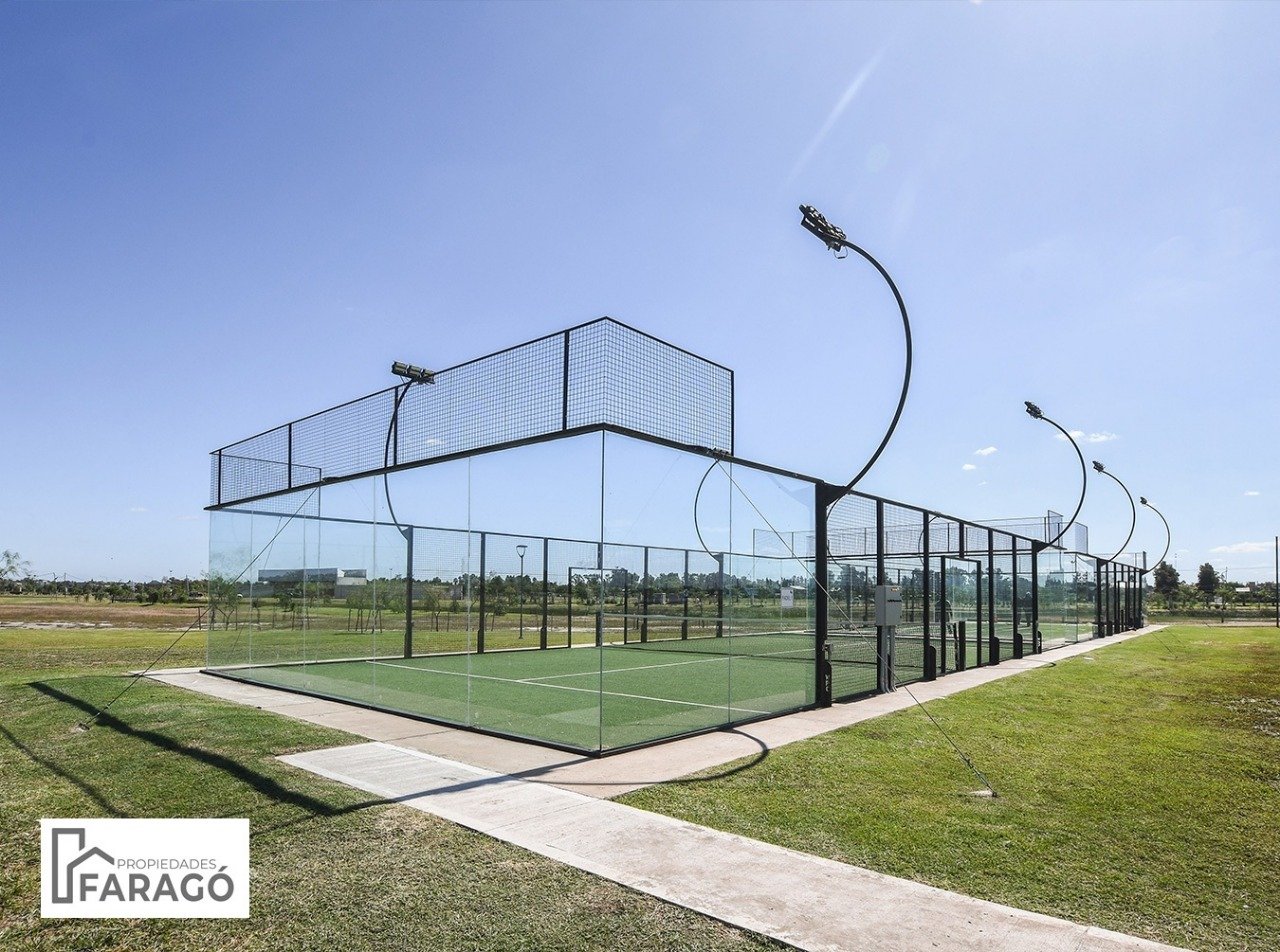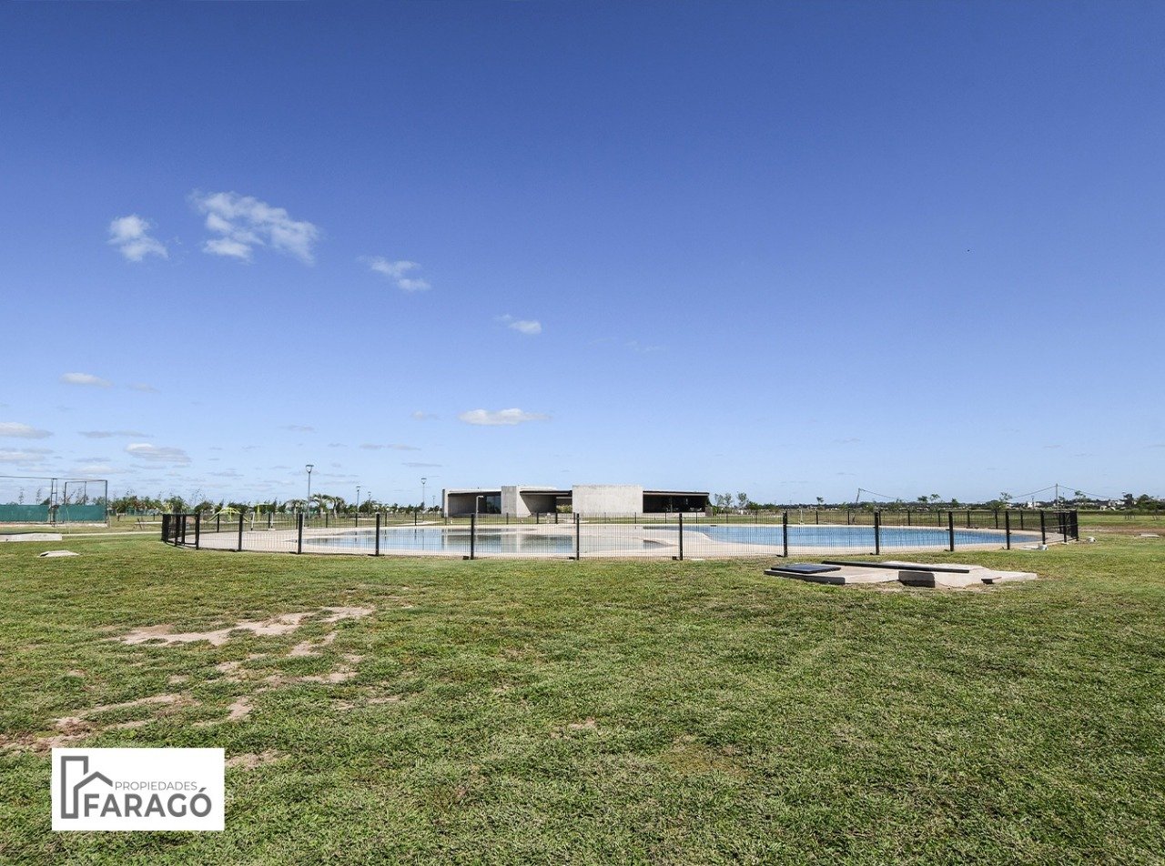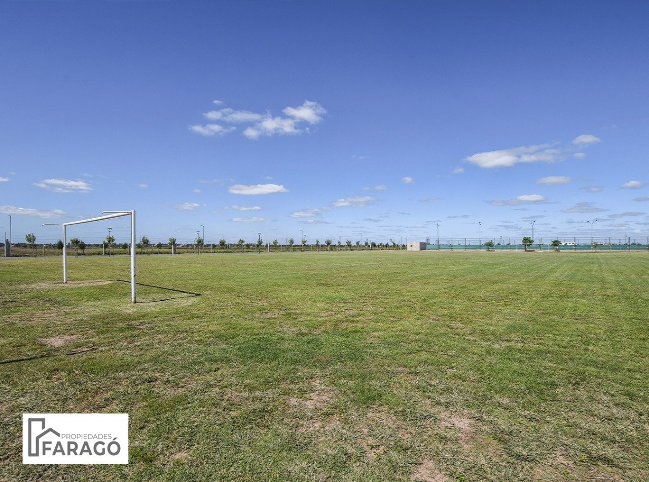 Red cloacal , red de gas y amenities , club house, quincho, pileta descubuerta , canchas futbol, canchas de tennis, canchas de paddle.